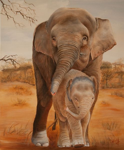 Die asiatischen Elefanten wurden auf Wunsch mit Acrylfarben auf Leinwand gemalt und ist somit nicht verfügbar. Das Format ist 50 x 60 cm.